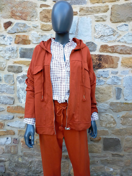 Promo !GILET SWEAT À CAPUCHE - Brique